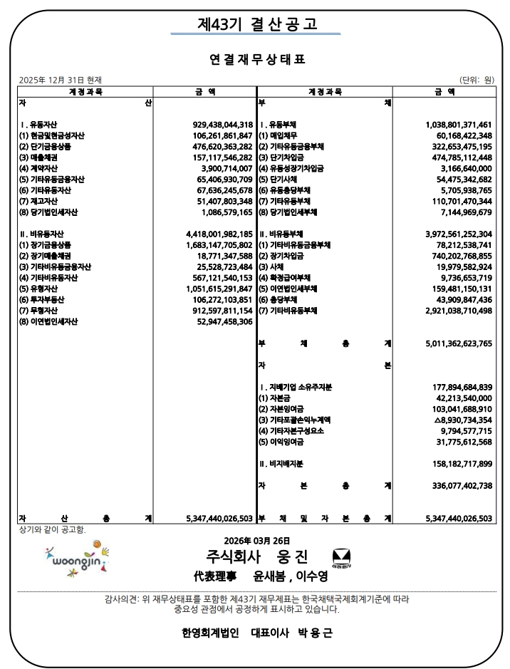 제43기 결산공고(연결)